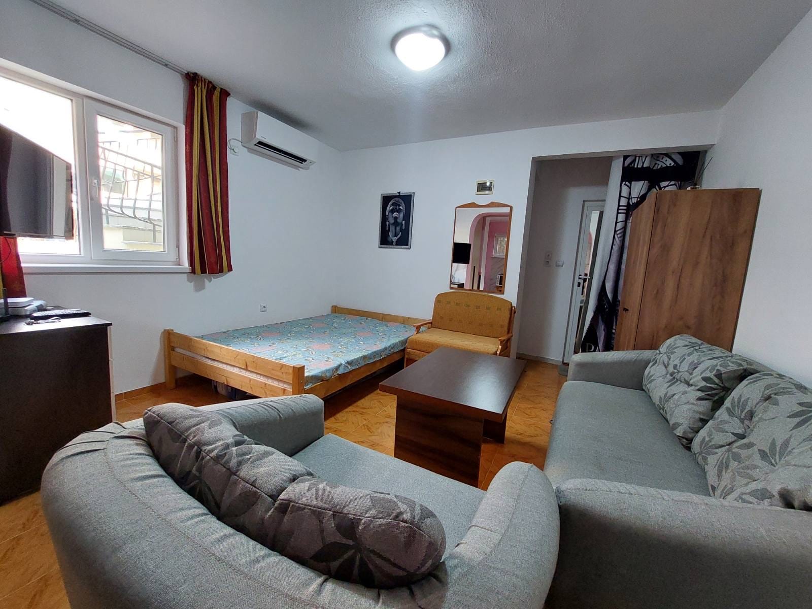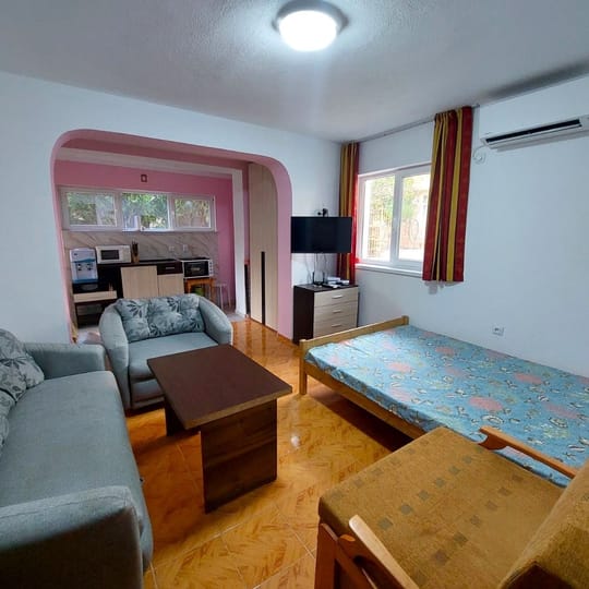 Комфорт, локация и инвестиция в едно Евродом Кредит с удоволствие представя за продажба светъл и уютен едностаен апартамент, разположен само на крачки от централния пясъчен плаж на Свети Влас - една от най-предпочитаните и престижни локации по българското Черноморие. Имотът се намира на първи етаж в отлично поддържан комплекс и разполага с югозападно изложение, което осигурява естествена светлина през целия ден. Към апартамента има собствена слънчева веранда - перфектно място за сутрешно кафе, релакс след плаж или спокойни вечери на открито. 🏡 Разпределение и удобства: • функционално организирано вътрешно пространство • кухненски бокс • спален кът • всекидневна зона • мокро помещение • баня с тоалетна Апартаментът е изцяло обзаведен и готов за нанасяне, без необходимост от допълнителни инвестиции. Комплексът предлага целогодишен комфорт и сигурност, с ниска годишна такса от само 330 лв., която включва: • целогодишна охрана и контролиран достъп • поддържани общи части и редовно почистване • паркоместа • басейн -35кв. -0895420076 Таня Колева